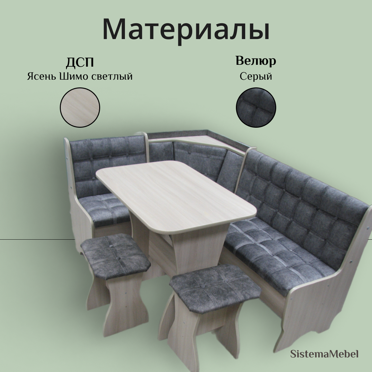 Кухонный уголок Аленка 17 лдсп Ясень шимо светлый Серый велюр. информация:
