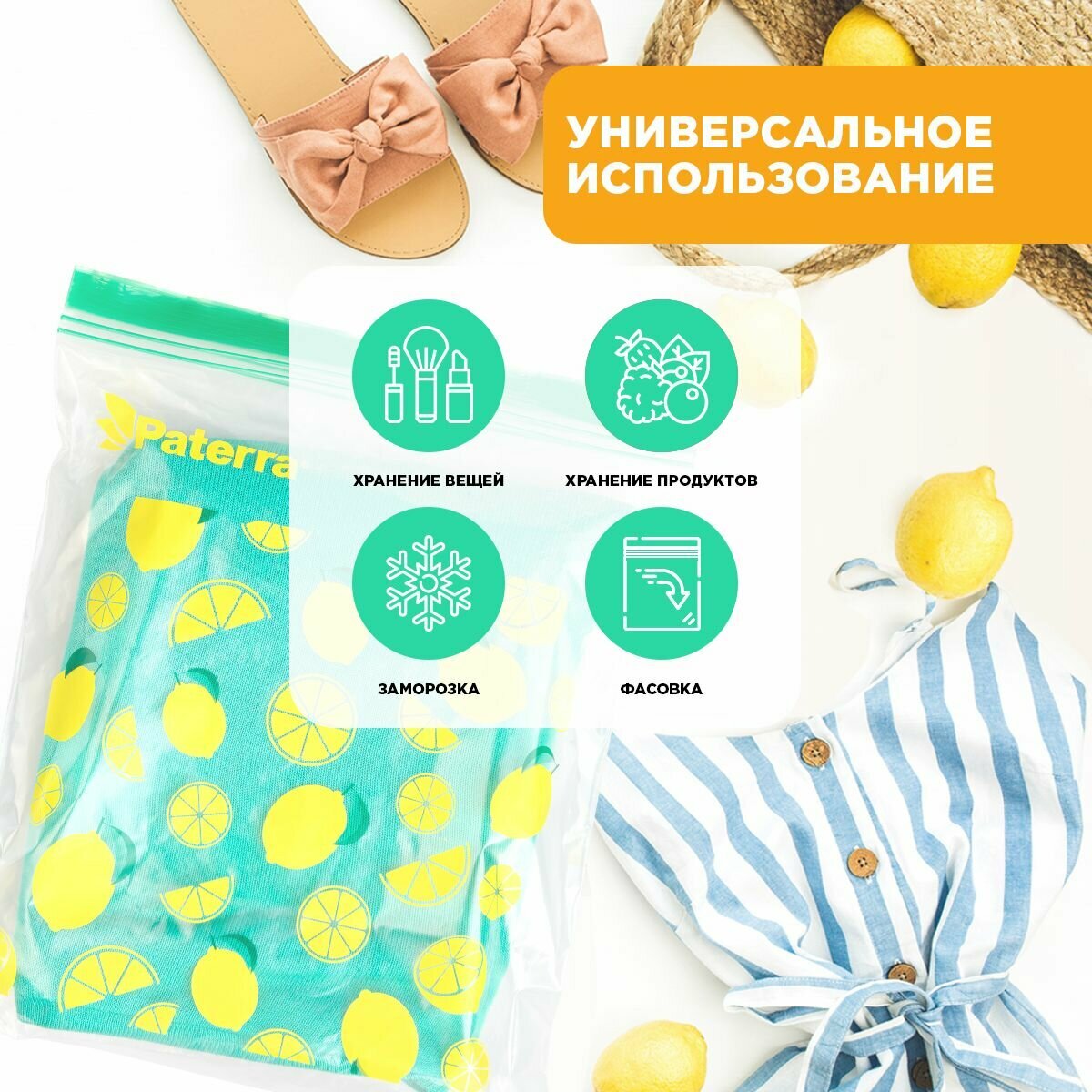 Пакеты универ 25 шт-20.5х20.5 см,25 шт-24х26.5 см с двойн замком 50 шт/уп Лимон,ананас PATERRA 1 670 ₽