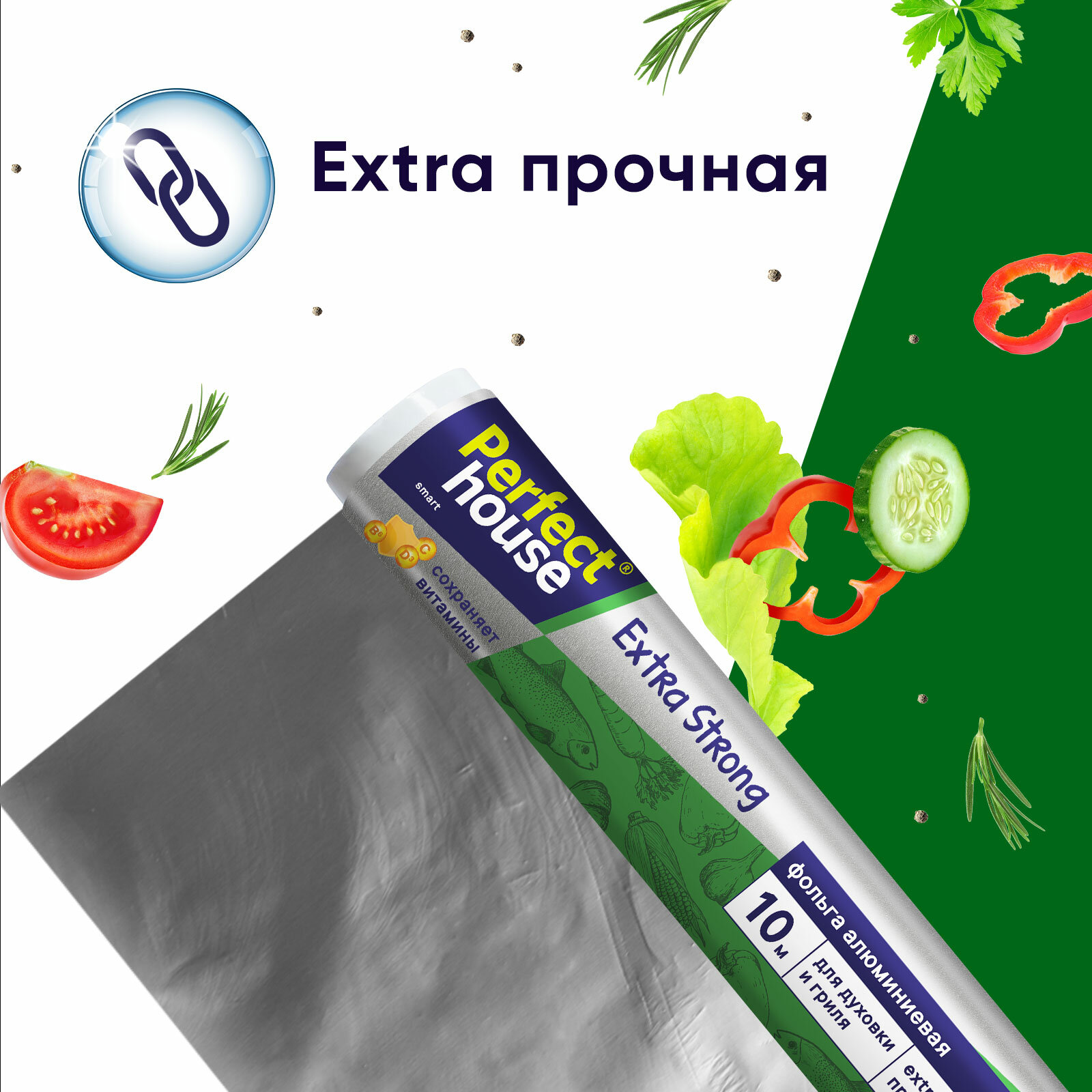 Фольга пищевая Perfect House Extra Strong для запекания в духовке, алюминиевая в рулоне, 10 м информация: