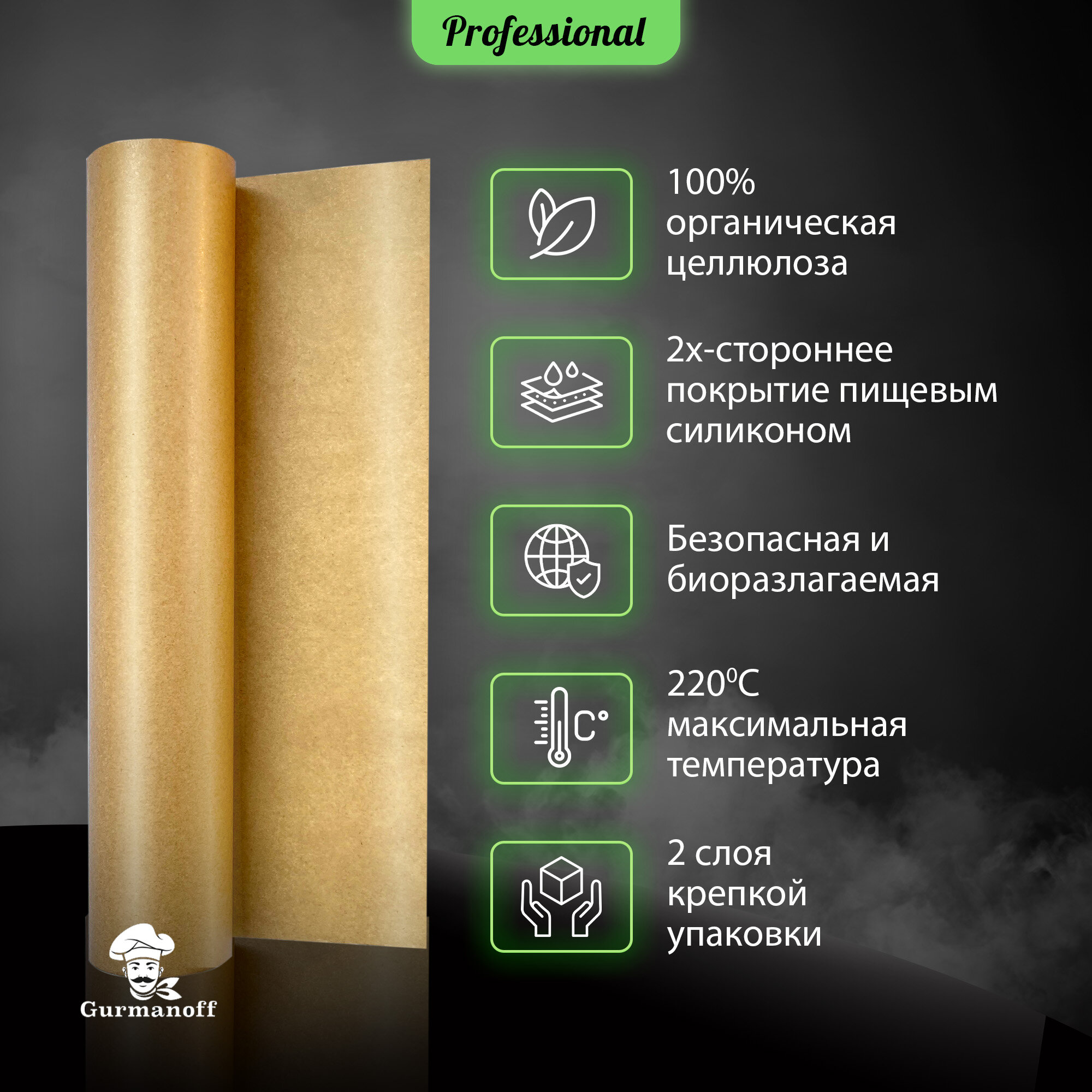 Бумага для выпечки силиконизированная Gurmanoff 100м х 38см многоразовая крафт /пергамент информация: