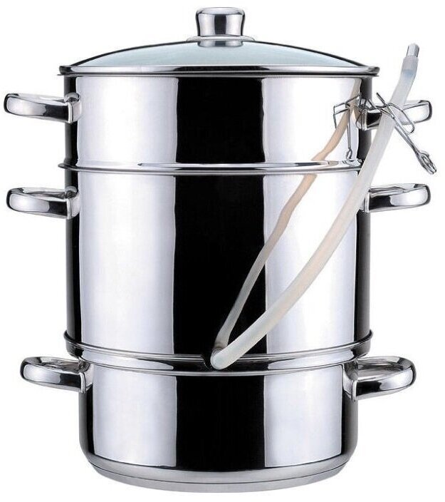 | Дополнительная информация | 3х-слойное капсульное дно; материал крышки: стекло; материал ручек: сталь; Общий объём 21 л: ёмкость для сока – 2,5 л, дуршлаг для продуктов – 8 л, кастрюля для воды – 4,5 л; подходит к индукционным, галогеновым, газовым, электрическим, керамическим плитам |