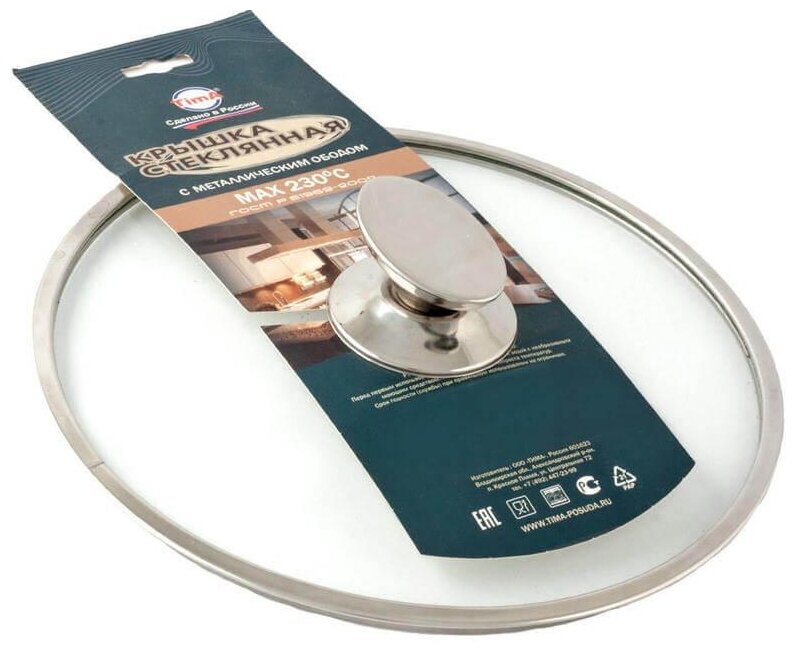 Отзывы на арт.5522 Крышка TimA стекл. с метал/обод + овальная ручка НЖС 22 см низ.