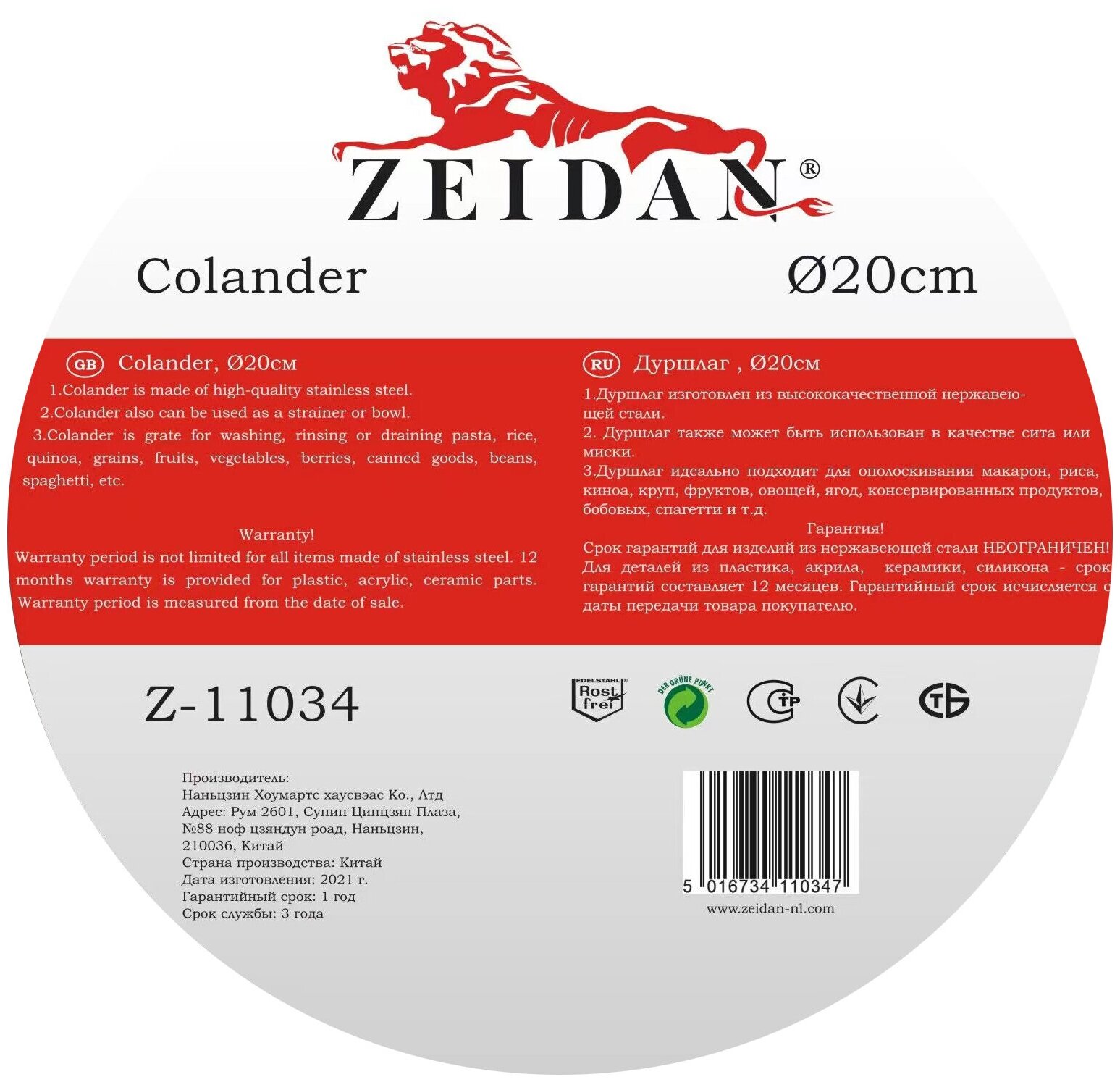 10 цен на Дуршлаг металлический на ножках с ручками Zeidan сито из нержавеющей стали диаметр 20 см