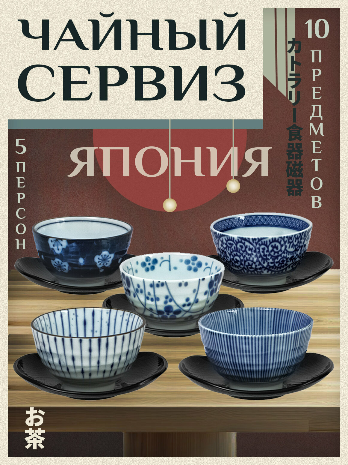 10 цен на Чайный сервиз набор посуды чашки для чая 5 шт. + подставки под горячее 5 шт.