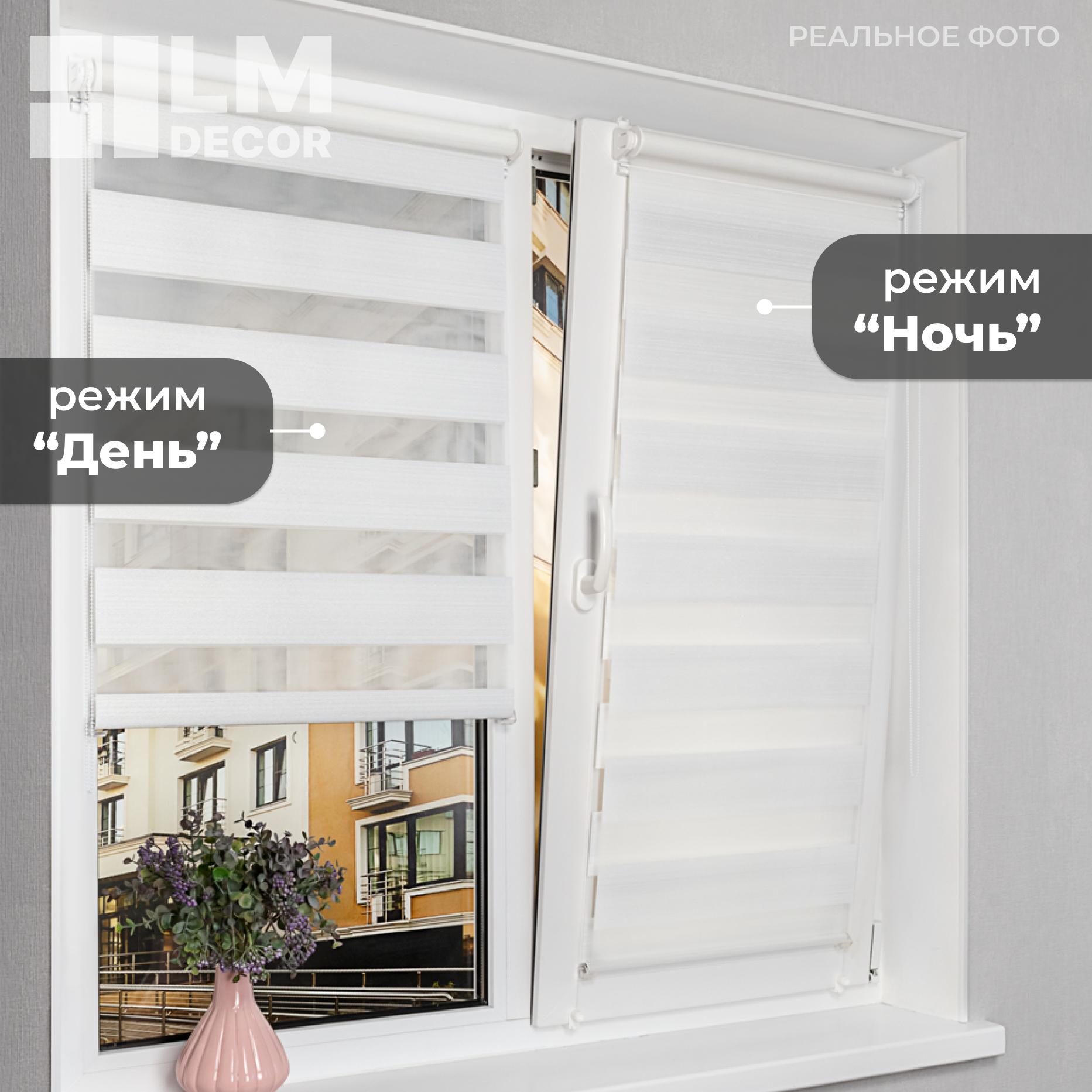 Рулонные шторы День-Ночь LM DECOR "Марсель" 01 белый 140х170 см 4 925 ₽