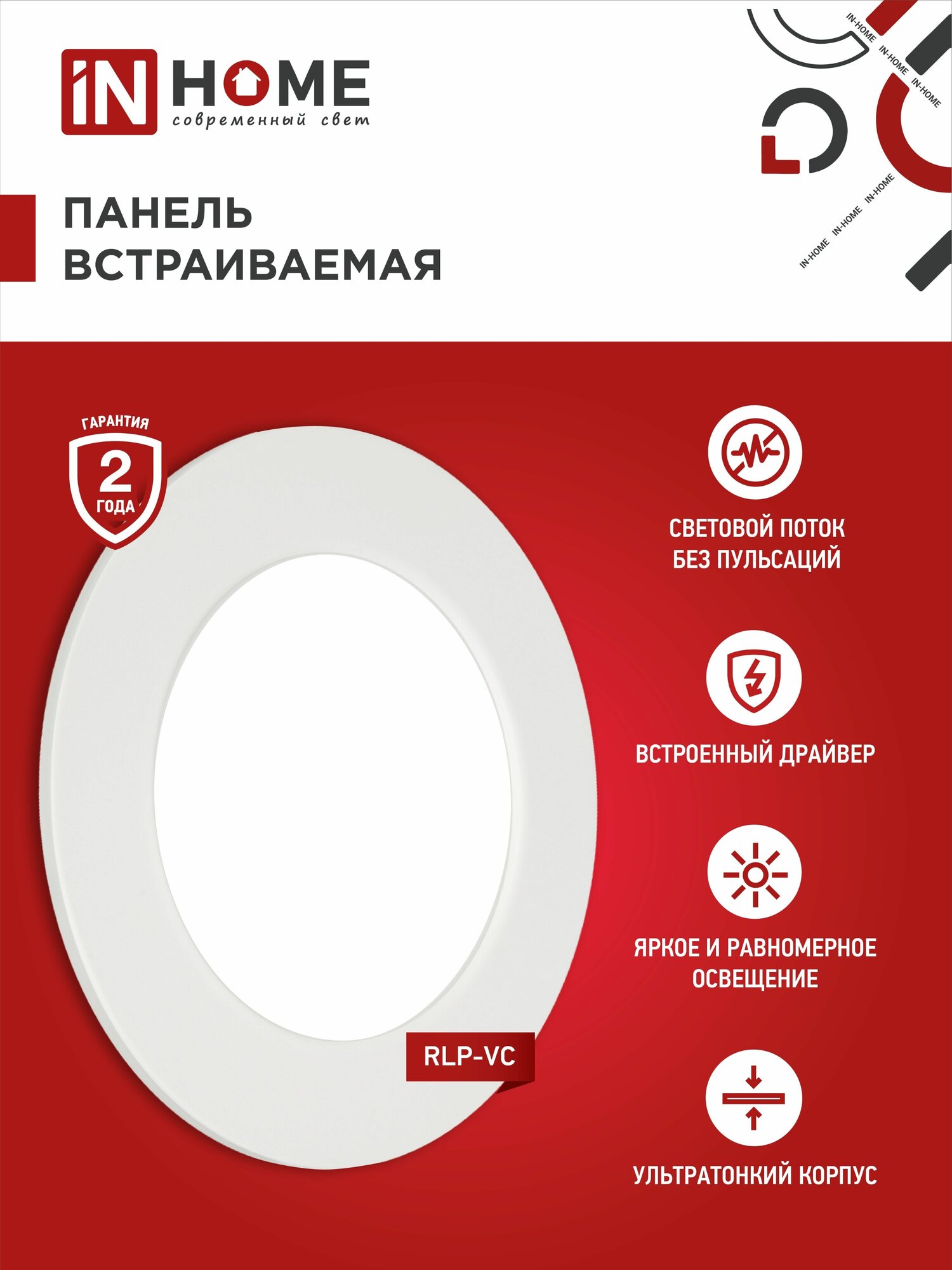 IN HOME Панель сд встраиваемая круглая RLP-VC 6Вт 230В 4000К 420Лм 95мм белая IP40 (арт. 4690612023342) 221 ₽