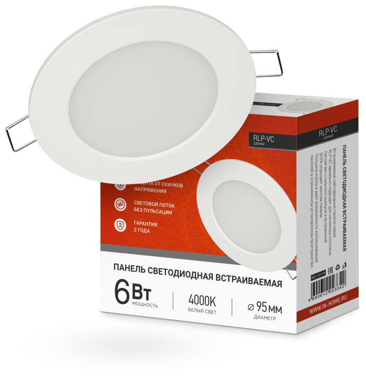 | Дополнительная информация | Светильник встраиваемый In Home RLP-VC 6Вт 230В 4000К 420Лм IP40 95мм белый |