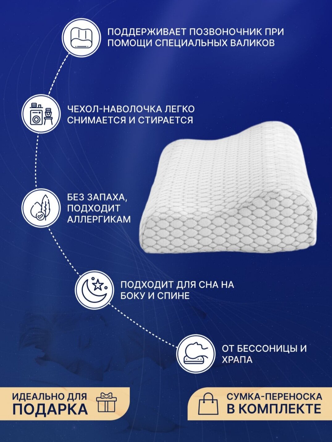 Ортопедическая подушка Memory Pillow с эффектом памяти средняя жесткость. Анатомическая Подушка