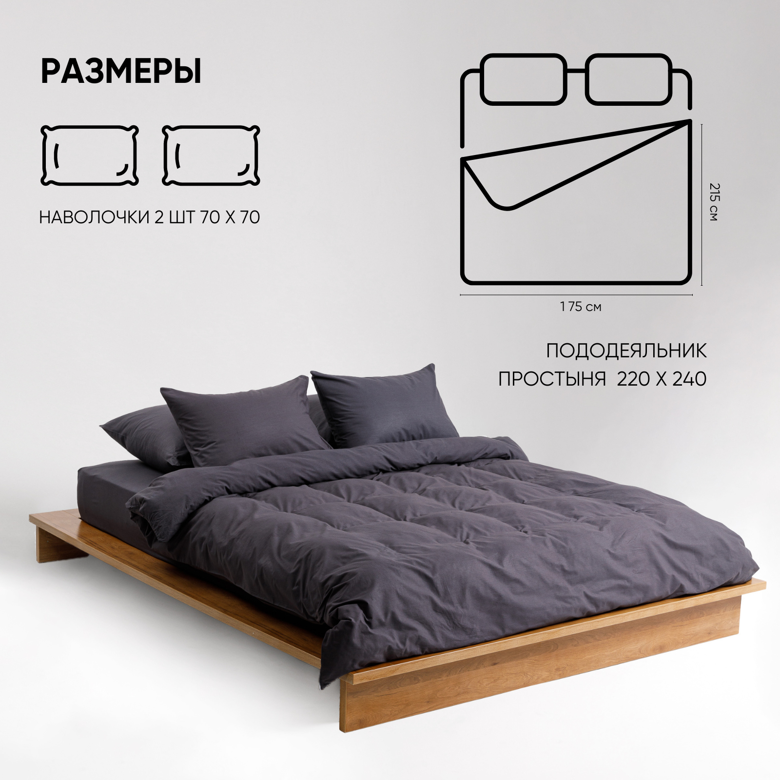Постельное белье на молнии однотонное Urban Family (аналог икеа), Графит, евро, наволочки 70х70, 100% хлопок, перкаль 2 880 ₽