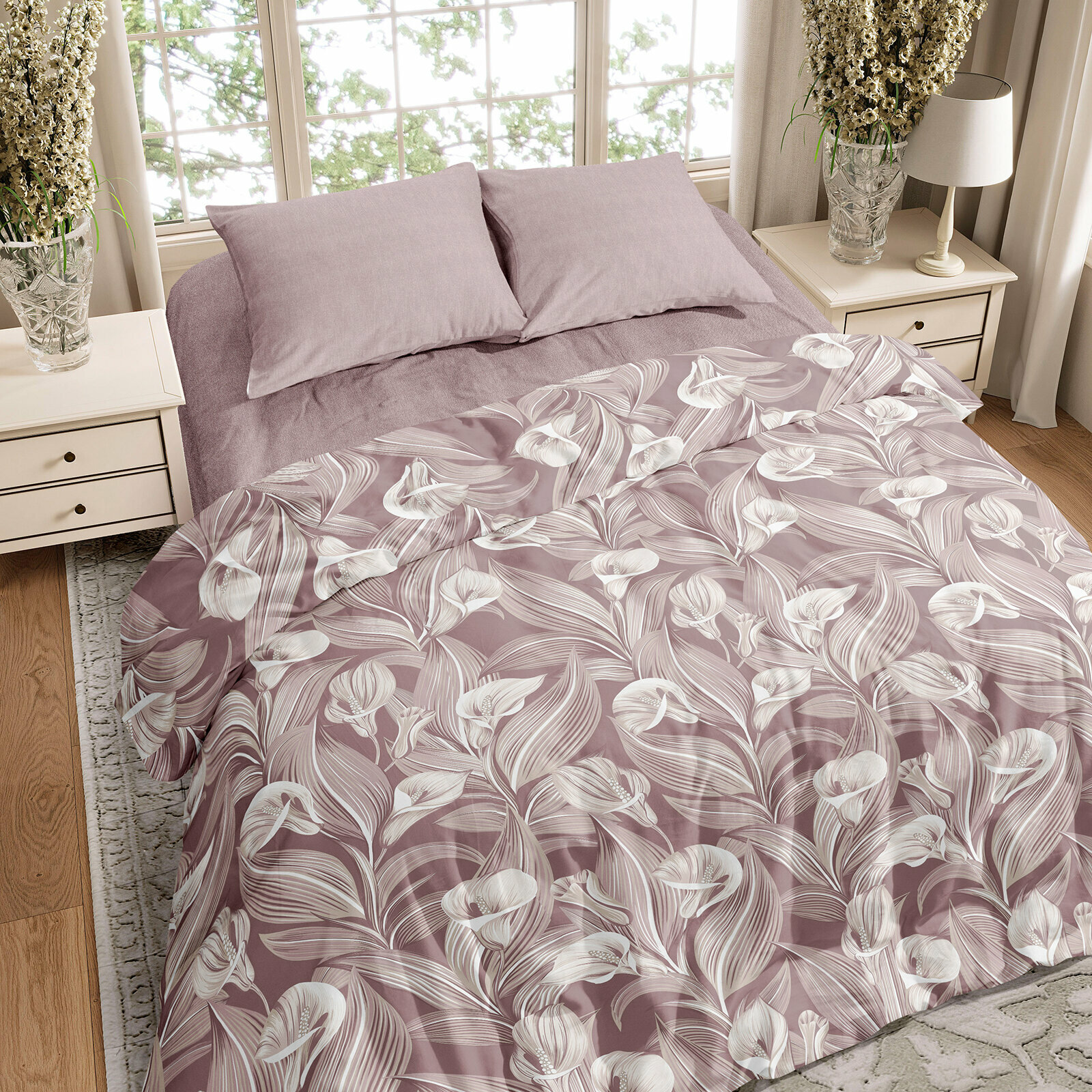 Постельное белье Евро Mia Cara, Перкаль, нав. 70х70, Таинственный сад, темно-фиолетовый 2 618 ₽
