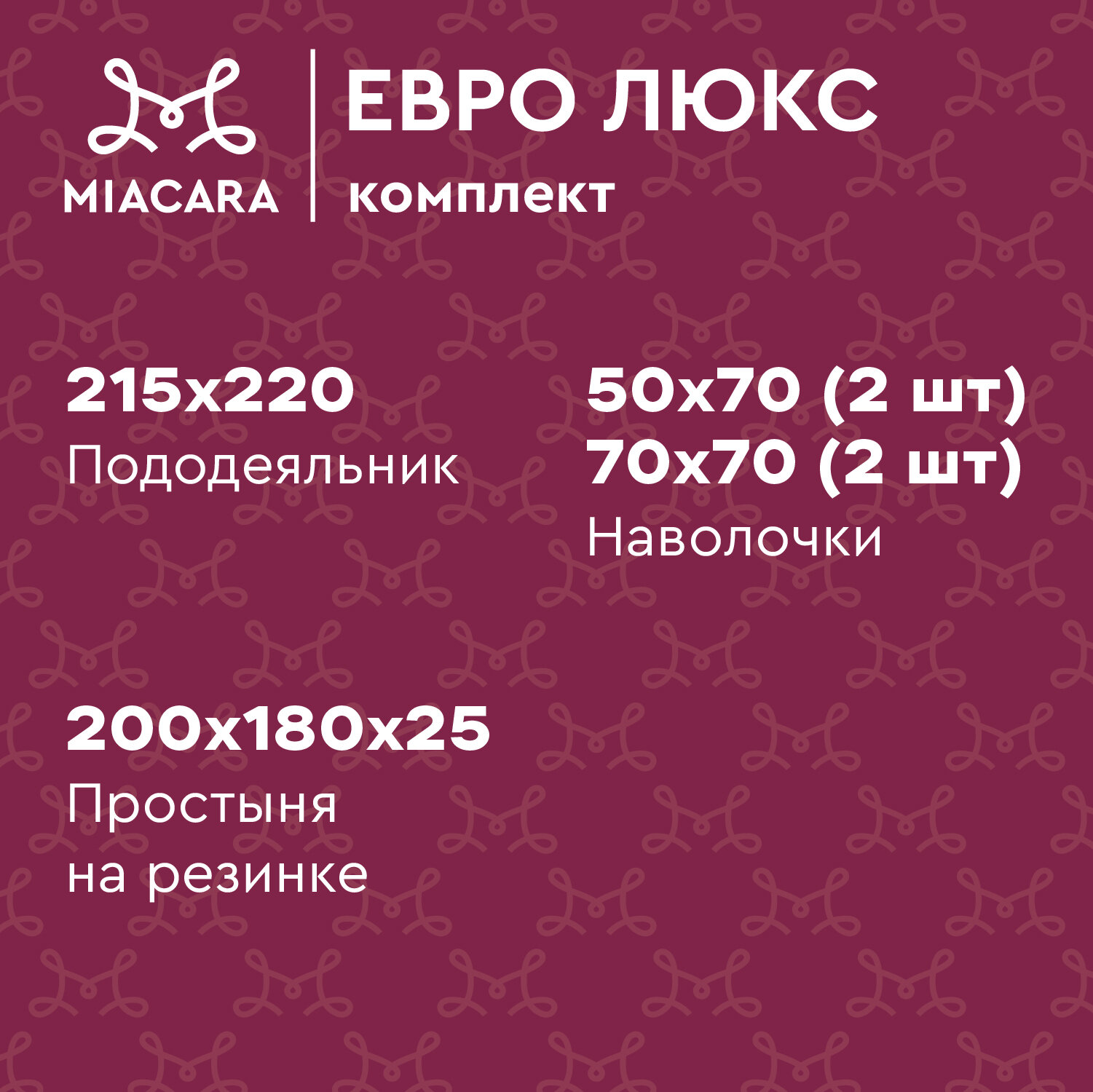 Постельное белье Евро Mia Cara, Перкаль, 4 нав. (50х70-2шт; 70х70-2шт), на резинке, La Perla (La Perla) 3 394 ₽