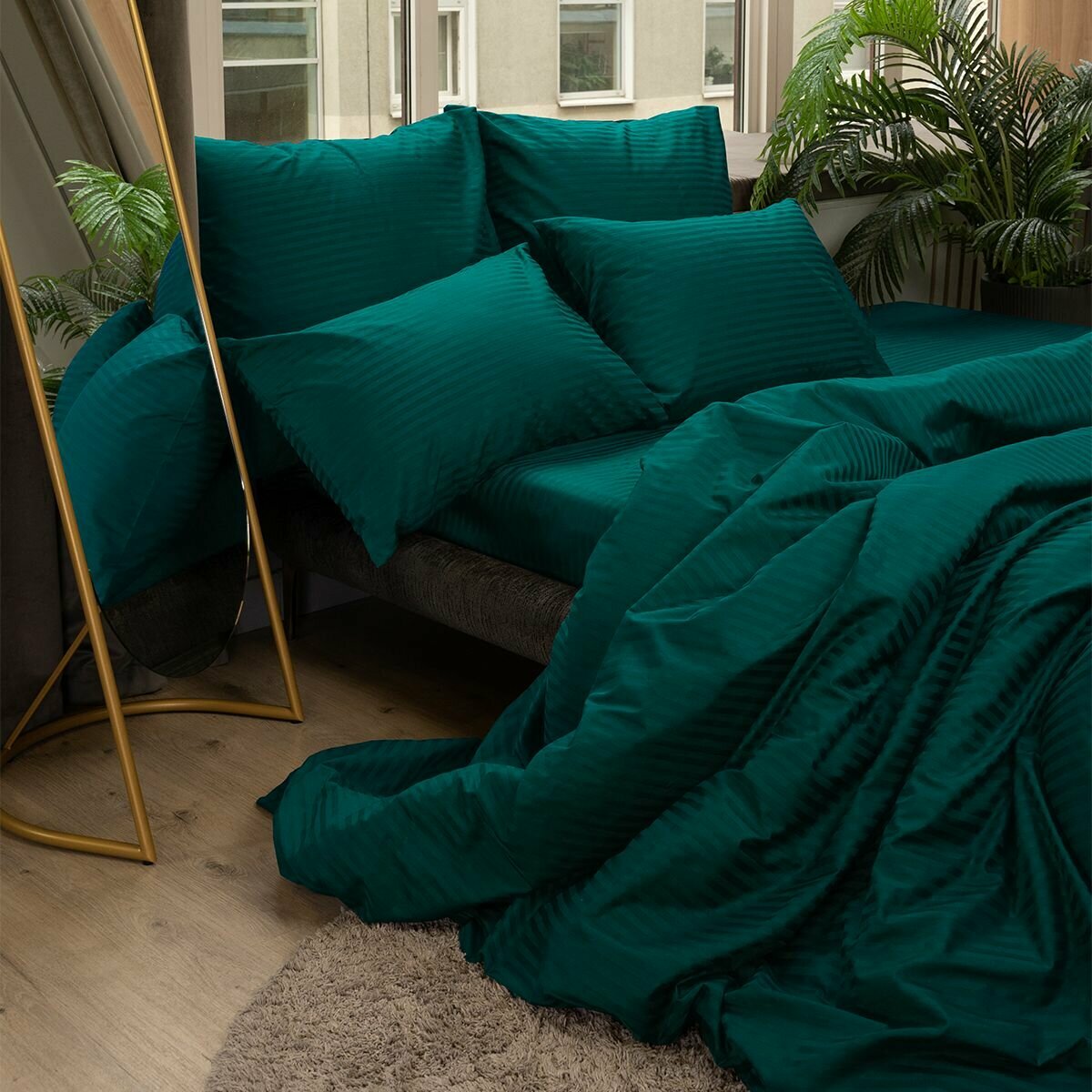 Комплект постельного белья Евро размер Monocolor Страйп сатин 100% хлопок / 4 наволочки /зеленый /премиум качество информация: