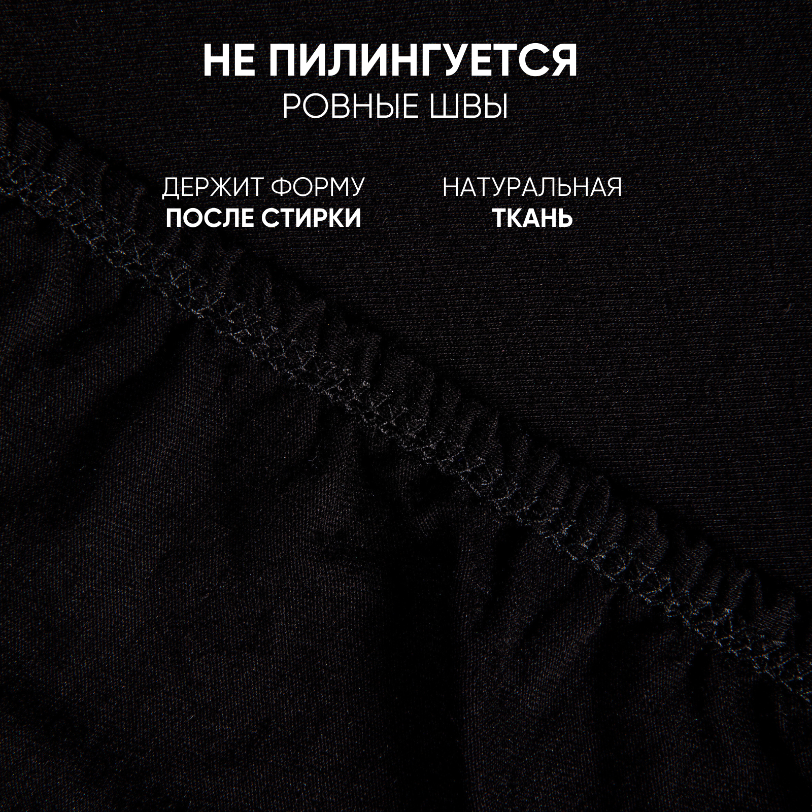 Простынь на резинке однотонная 200х200 см Ночь Нежна Черная, трикотажная, 100% хлопок, ткань кулирка 969 ₽