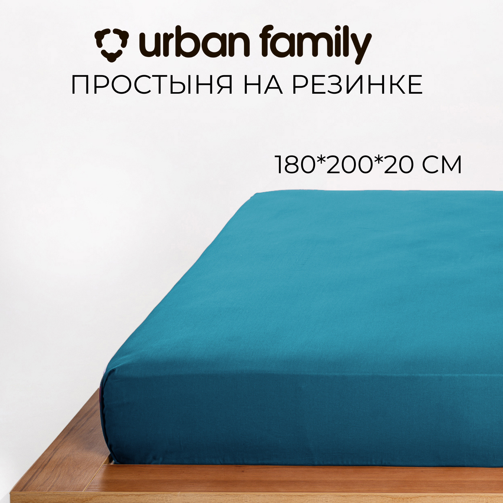 Простынь на резинке 180х200 см, Urban Family (аналог икеа) Темно-бирюзовый, перкаль, 100% хлопок информация: