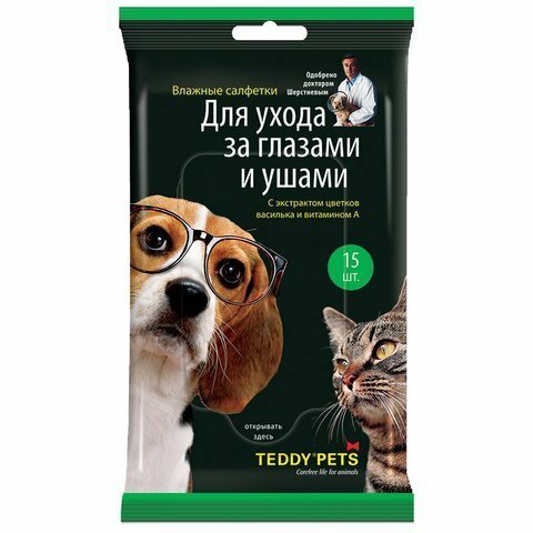 | Подробная комплектация | Влажные салфетки Teddy Pets влажные для ухода за глазами и ушами для кошек и собак |