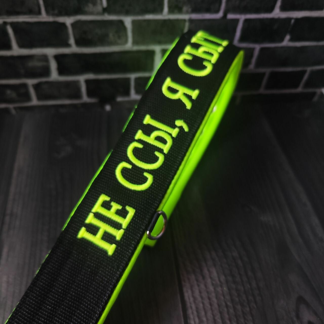 Широкий ошейник с вышивкой "Не ссы я сыт" от DOGTON, с принтом, с рисунком для собак крупных и средних пород. Ширина 5.5 см. Обхват шеи 35-47 см. информация: