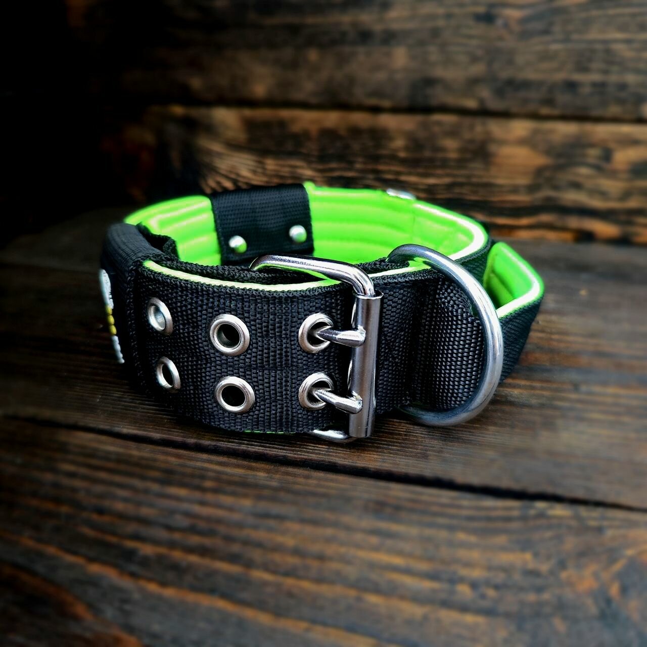 Ошейник для собак. Ширина 4.5 см. Мягкий зеленый подклад. Сварная фурнитура.