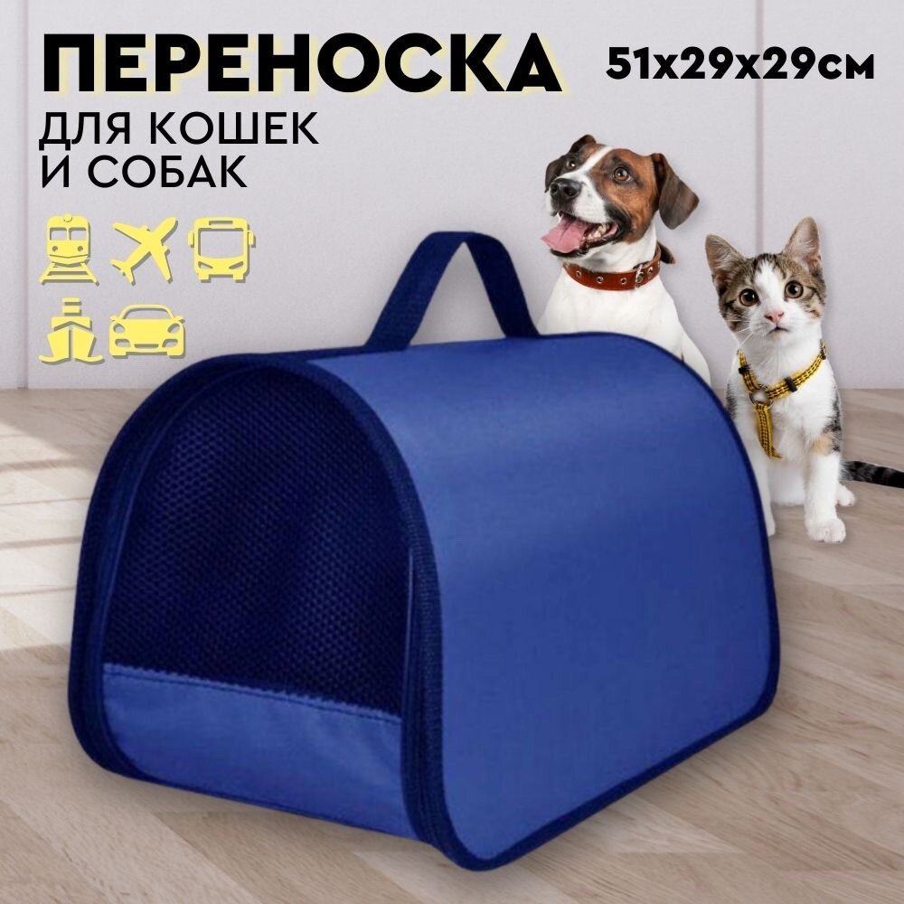 Сумка переноска для кошек и собак складная для мелких и средних пород до 12 кг XL ZOLO № 4 51x29x29 см для самолета авиаперевозок синяя информация: