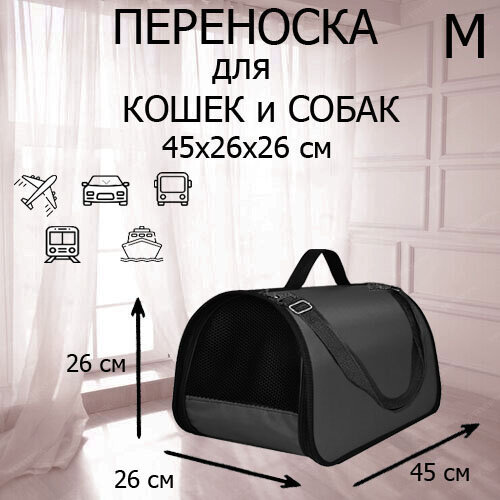 Сумка переноска для кошек, для собак мелких и средних пород, 43х25х28 см, Серый