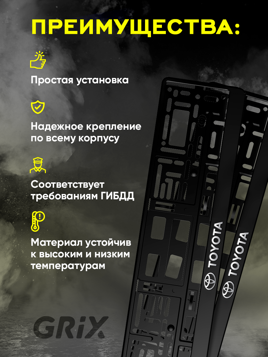 Отзывы на Grix Рамки автомобильные для госномеров с надписью "TOYOTA RACING" Набор - 2 шт.