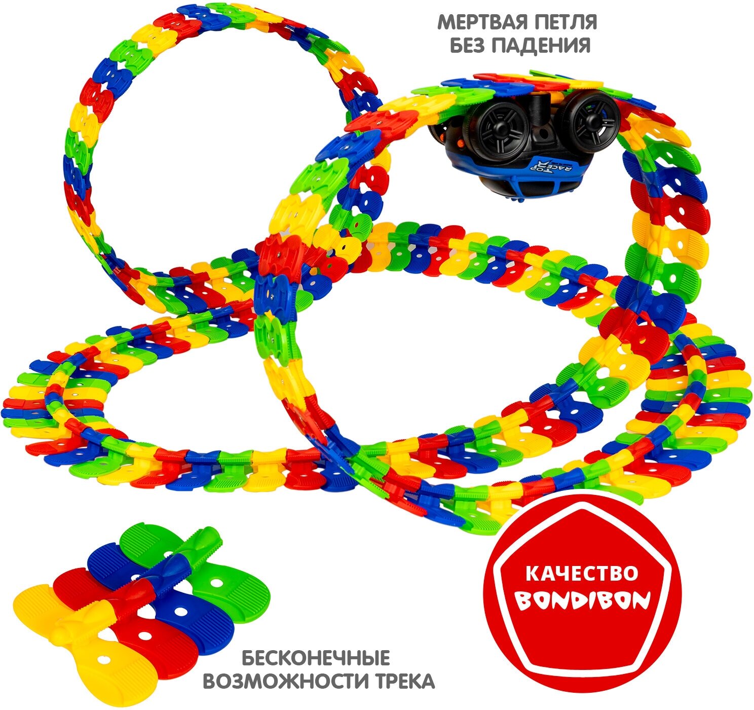 Отзывы на Гибкий автотрек Bondibon "безумная трасса" с машинкой, 144 деталей трассы, BOX