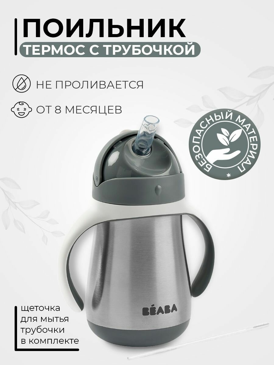 Отзывы на Поильник термос детский BEABA, поильник с трубочкой, непроливайка 250 мл., серый