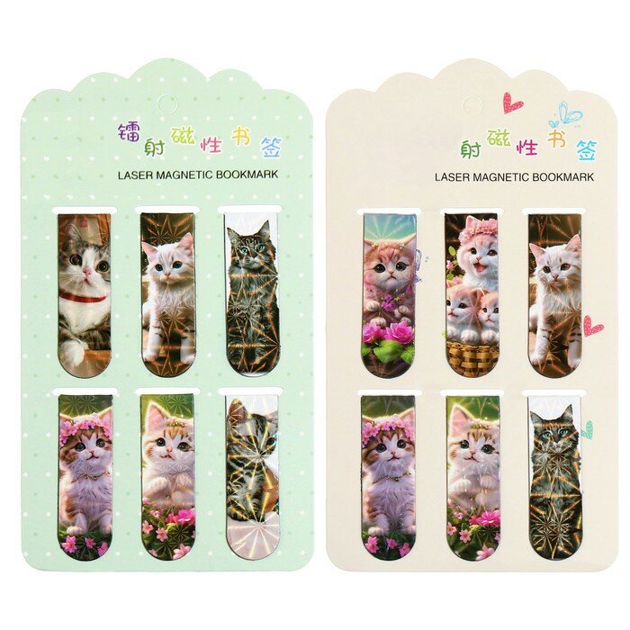 Набор магнитных закладок для книг Calligrata 6 штук, "Котята", микс информация: