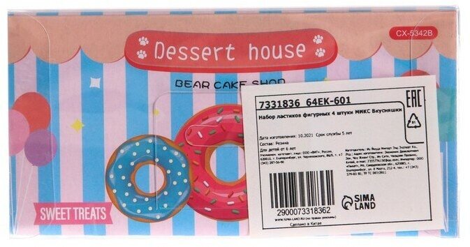 10 цен на Набор фигурных ластиков «Вкусняшки», 4 штуки, микс