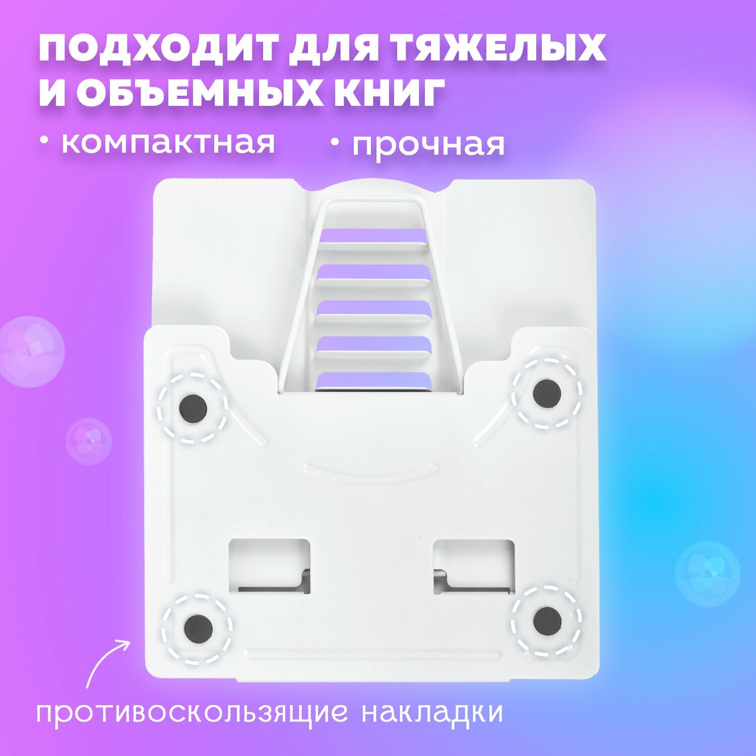 Подставка-держатель для книг, учебников, журналов настольная школьная Brauberg, White, регулируемый угол наклона, металл, 238056 информация:
