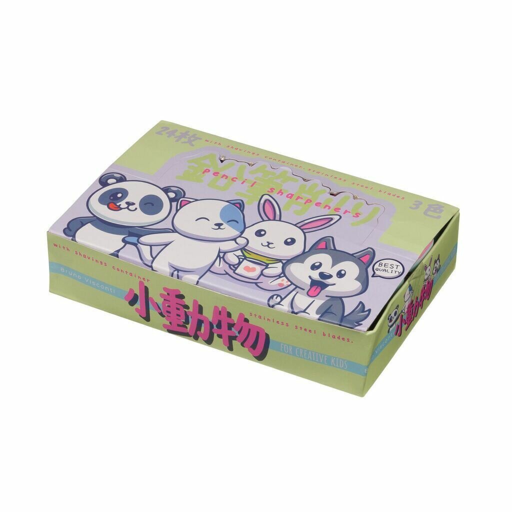 Точилка пласт. с контейнером 1 отв. Kawaii animals. Комплект из 24 точилок информация: