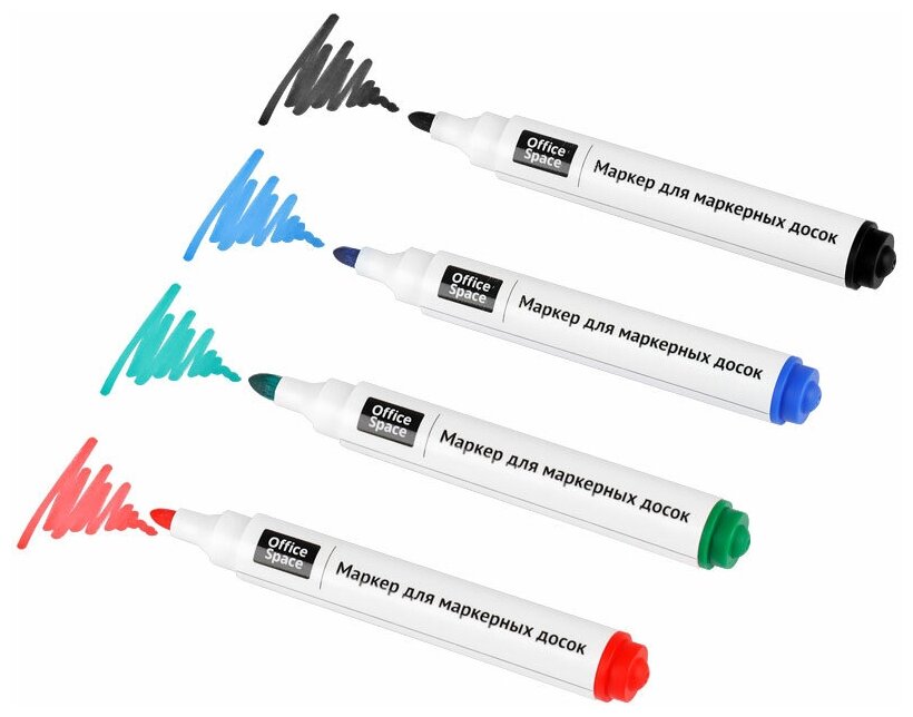 Набор из 4 маркеров для белых досок OfficeSpace , пулевидный, 2,5 мм