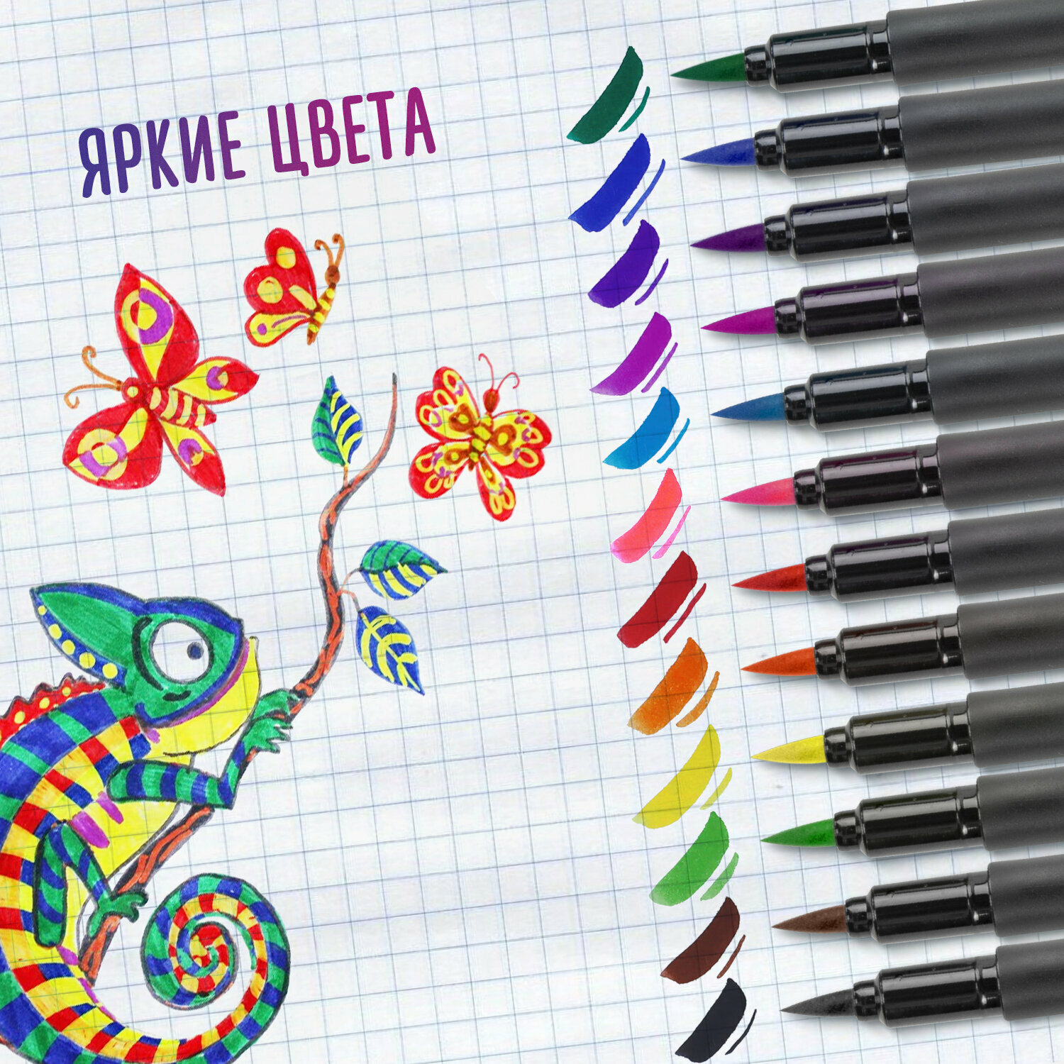 10 цен на Фломастеры цветные для детей набор с наконечником кистью 12 цветов, вентилируемый колпачок, Brauberg Premium, 152195