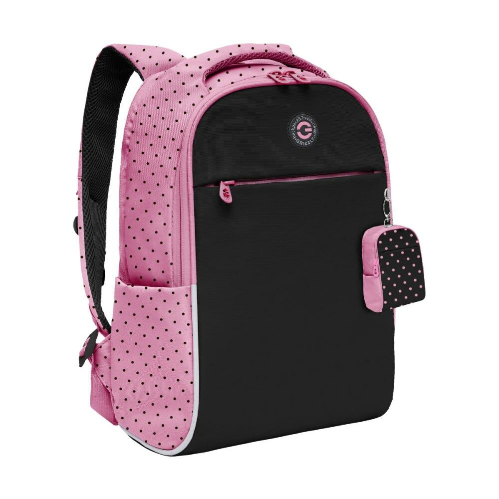 Школьный рюкзак GRIZZLY RG-367-2 черный-розовый, 28х39х12.5 информация: