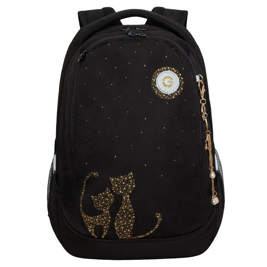 Рюкзак школьный для девочки подростка, с ортопедической спинкой, для средней школы, GRIZZLY (серый - черный)