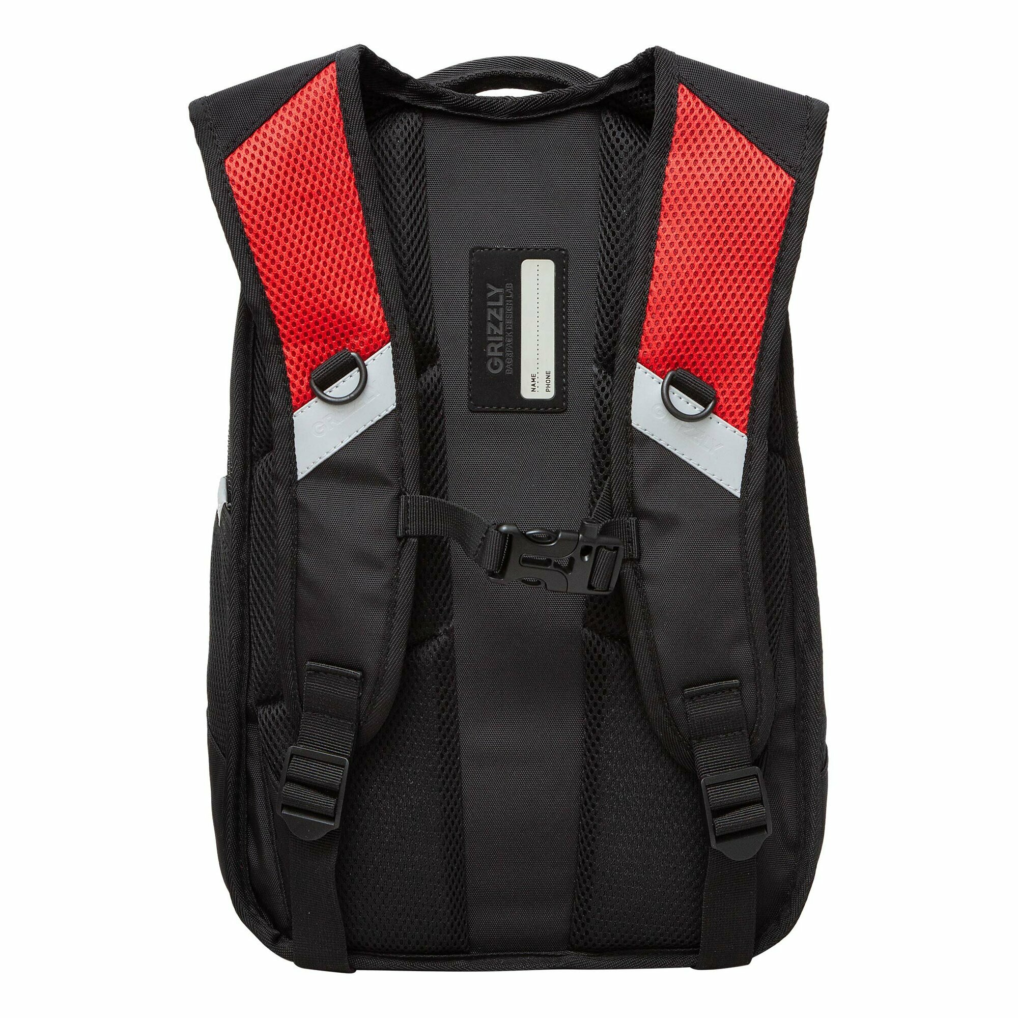 Школьный рюкзак с эргономичной спинкой GRIZZLY RU-436-2/1 черный - красный, 2 отделения, 832грамм, 47x32x17см