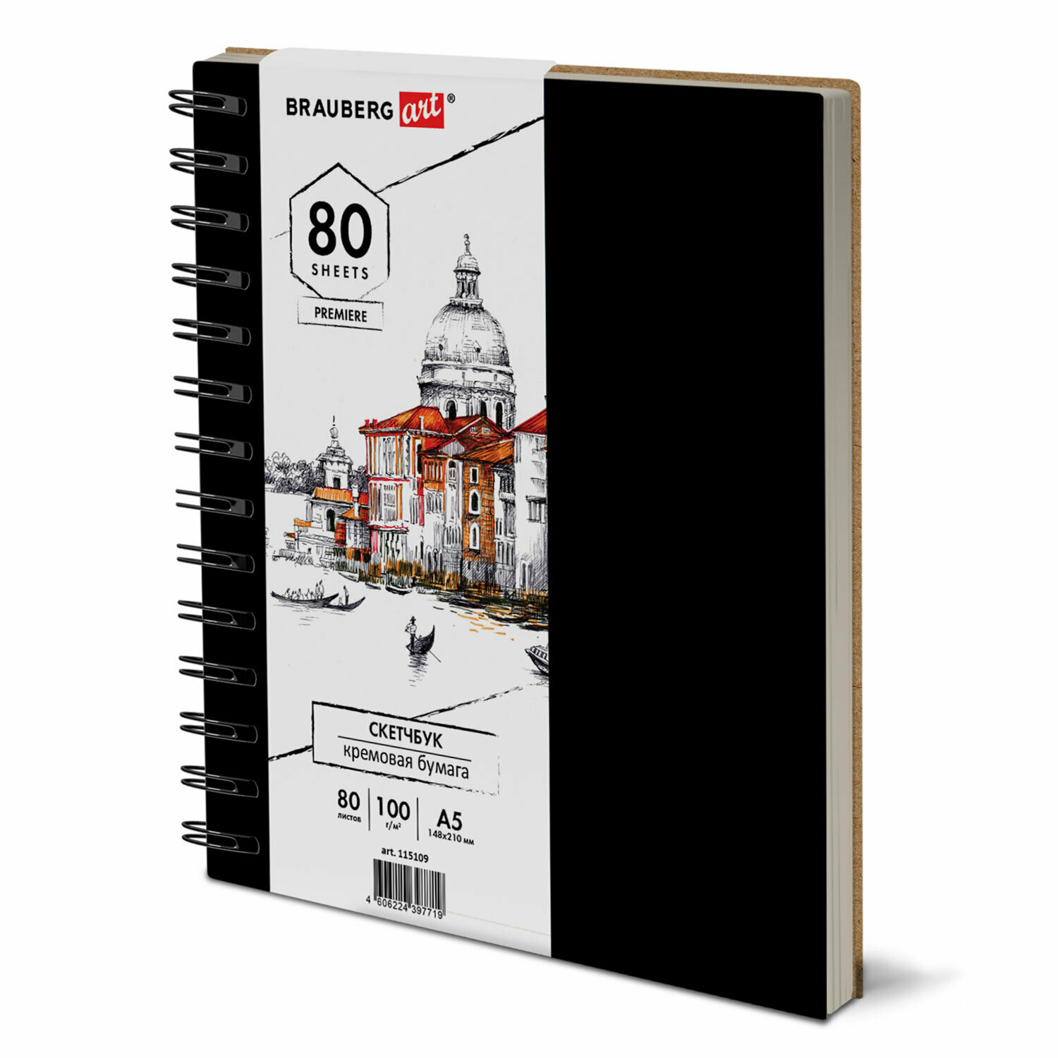 10 цен на Скетчбук, слоновая кость 100 г/м2, 148х210 мм, 80 л., гребень, твердая обложка, BRAUBERG ART PREMIERE, 115109
