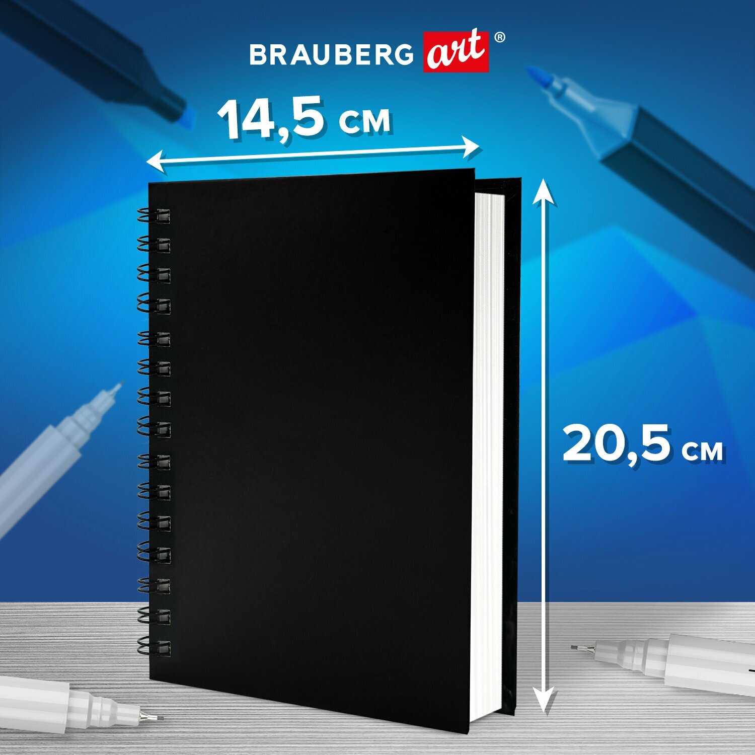 Скетчбук Brauberg для маркеров, бумага ВХИ 200 г/м2, 145х205 мм, 40 листов, гребень, твердая обложка, черная