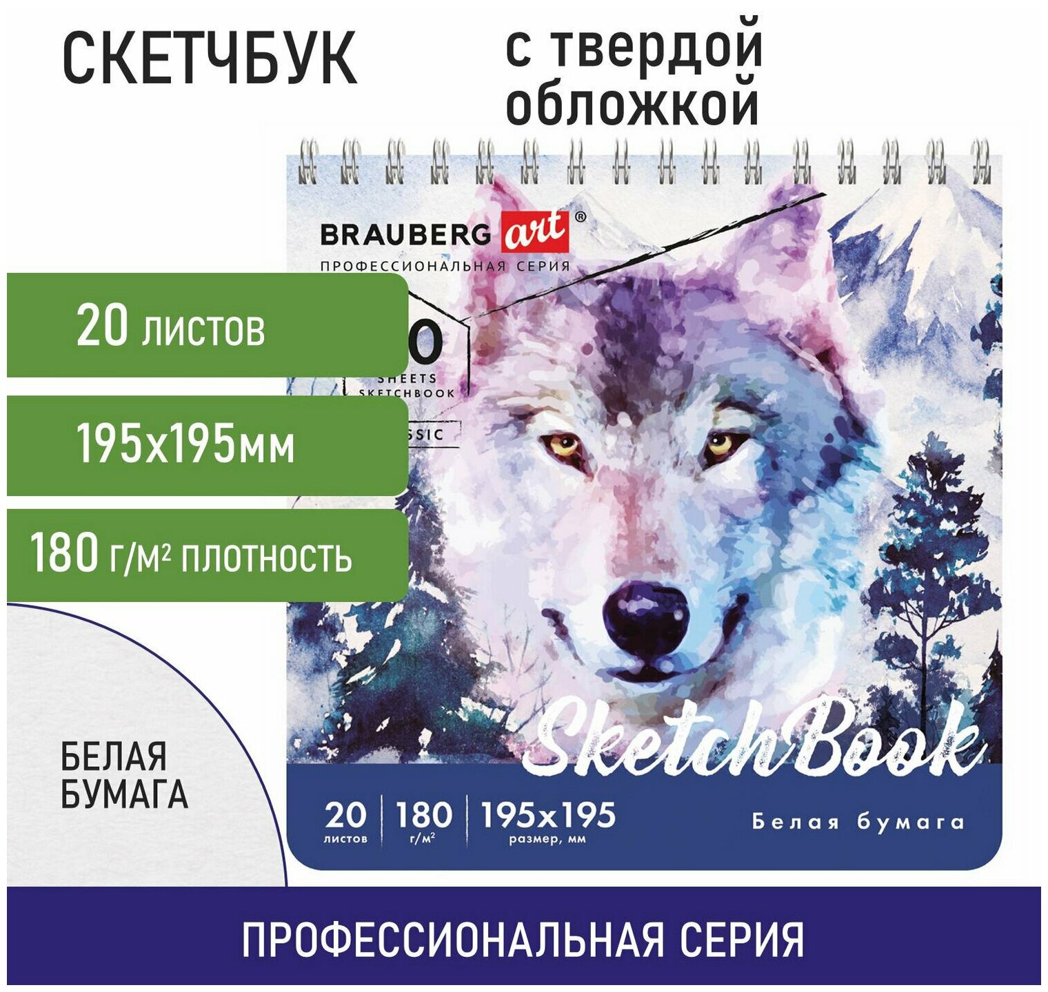 Блокнот-Скетчбук для рисования эскизов белая бумага 180г/м 195х195мм, 20л, гребень, твердая обложка, Brauberg Art Classic информация: