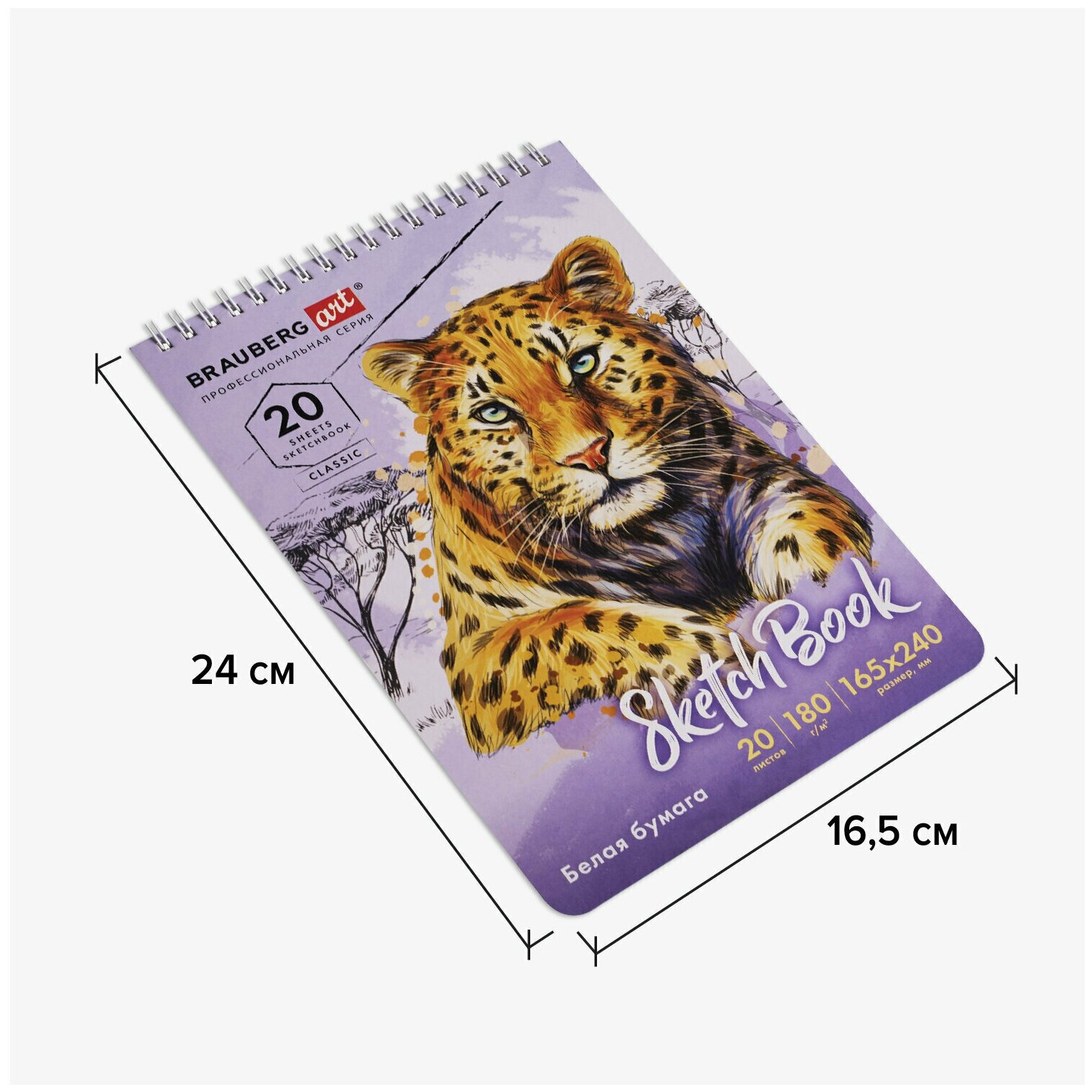 Блокнот-Скетчбук для рисования эскизов белая бумага 180г/м 165х240мм, 20л, гребень, твердая обложка, Brauberg Art Classic информация: