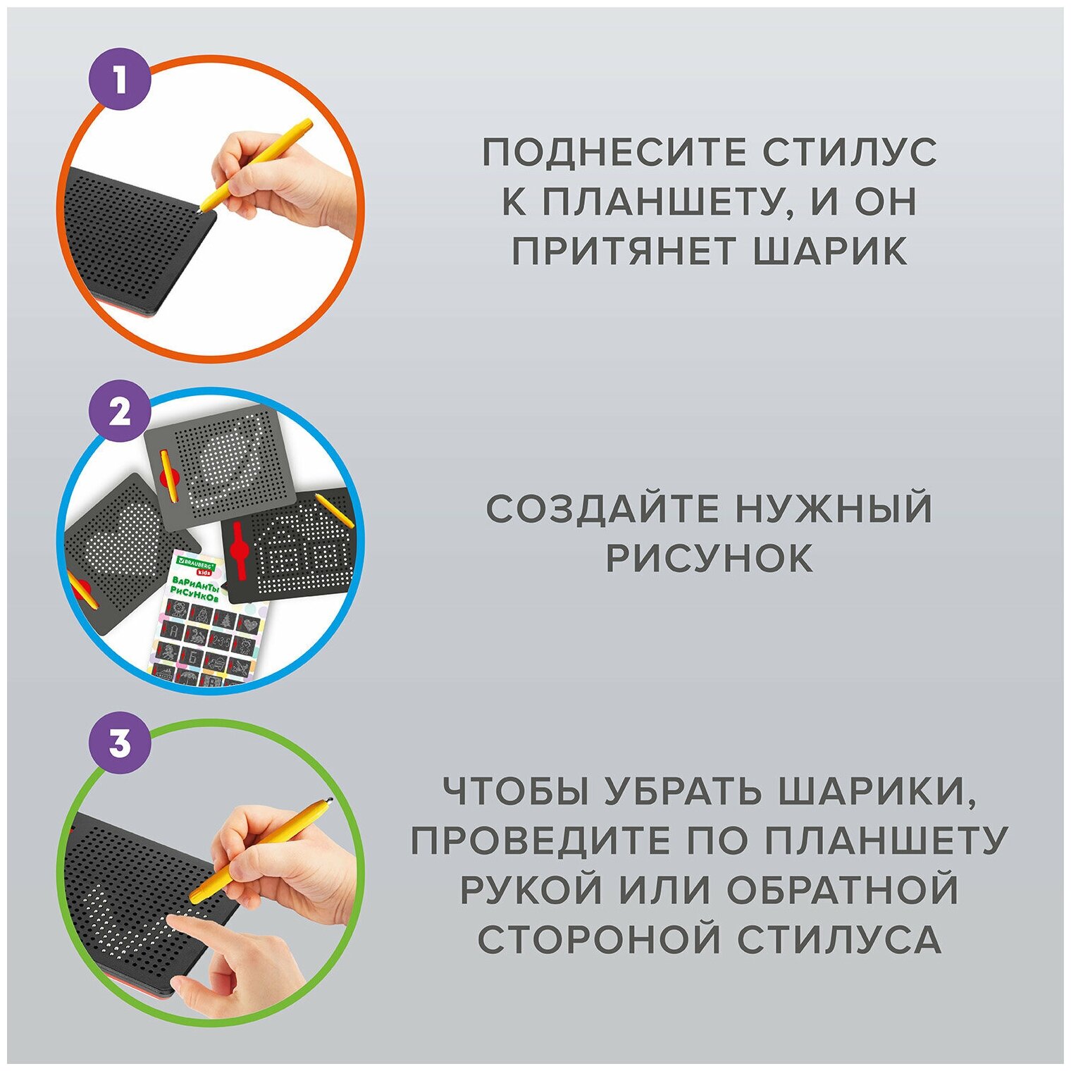 Магнитный планшет / доска для рисования детский с шариками Magpad Medium 17х21см, 380 шариков, Brauberg Kids, 664921 информация:
