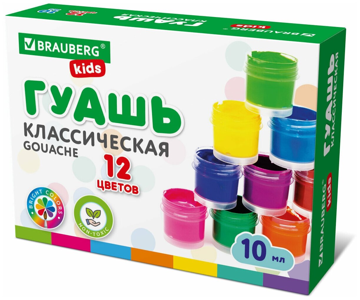 Гуашь (краска) для рисования школьная Brauberg Kids New, 12 цветов по 10 мл, 192368 информация: