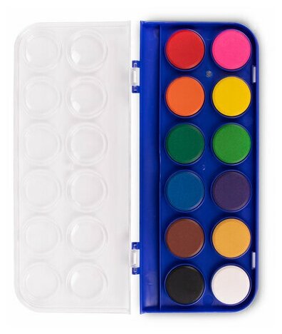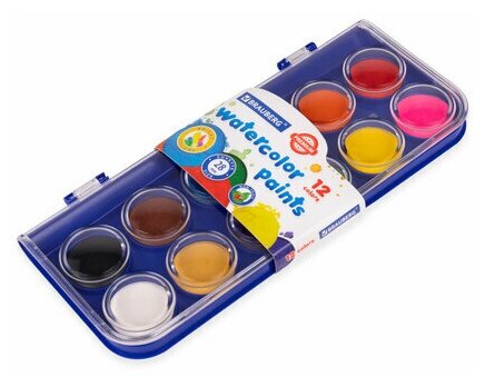 10 цен на Комплект 30 шт, Краски акварельные сухие BRAUBERG "PREMIUM" 12 цветов, круглые кюветы 28 мм, пластиковый пенал с европодвесом, 191743