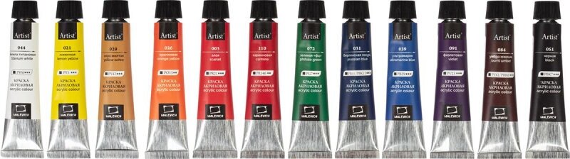 Отзывы на Комплект 5 наб., Краски акриловые матовые Малевичъ, 12 цветов по 12 мл, 612006
