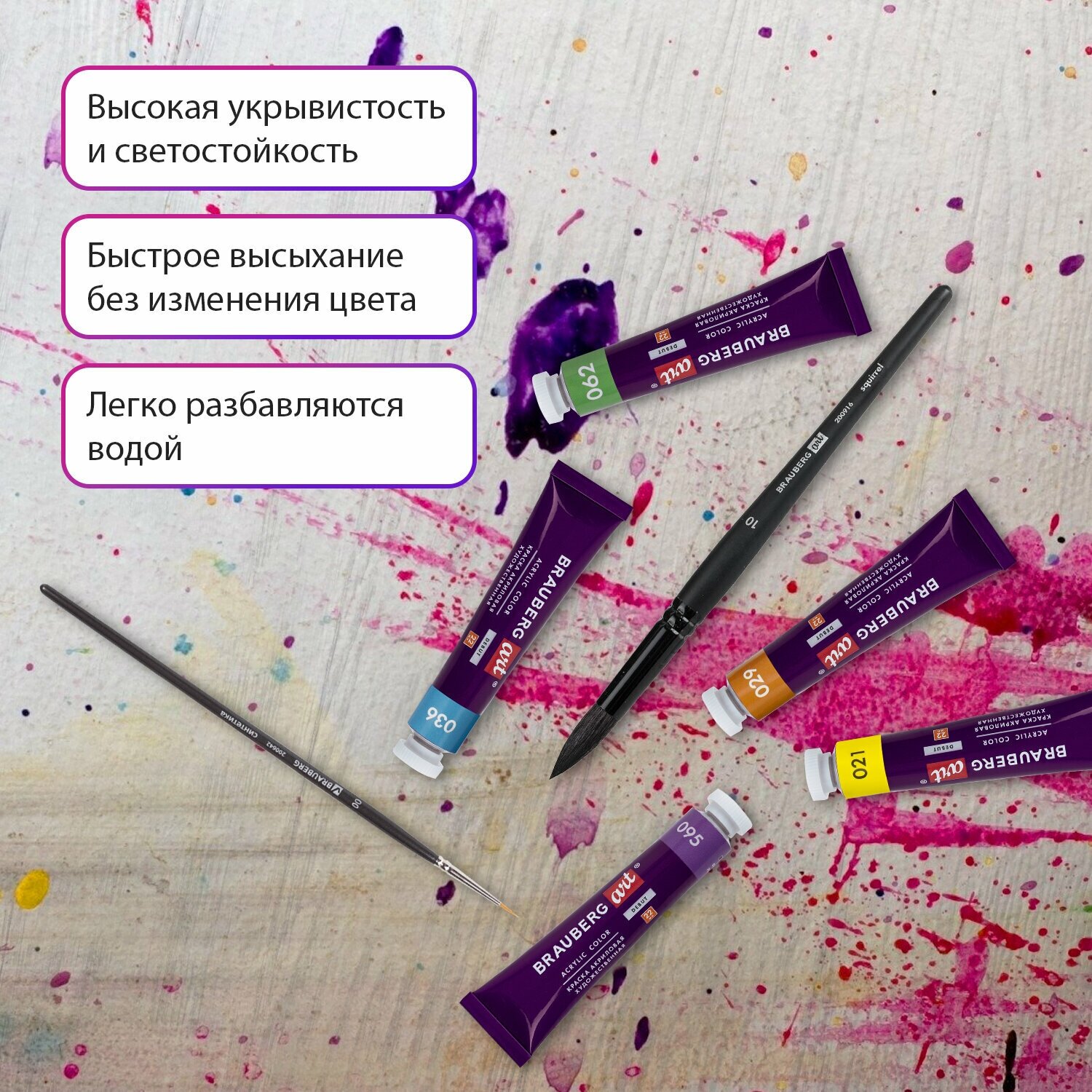 Краски акриловые художественные для рисования, Набор 24 штуки, 21 цвет по 22 мл, в тубах, Brauberg Art Debut, 192301 информация:
