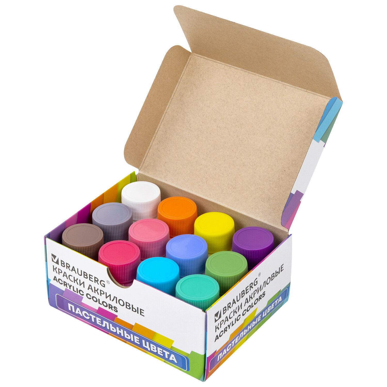 Краски акриловые художественные 12 Пастельных цветов в банках по 22 мл, Brauberg Hobby, 192411 информация: