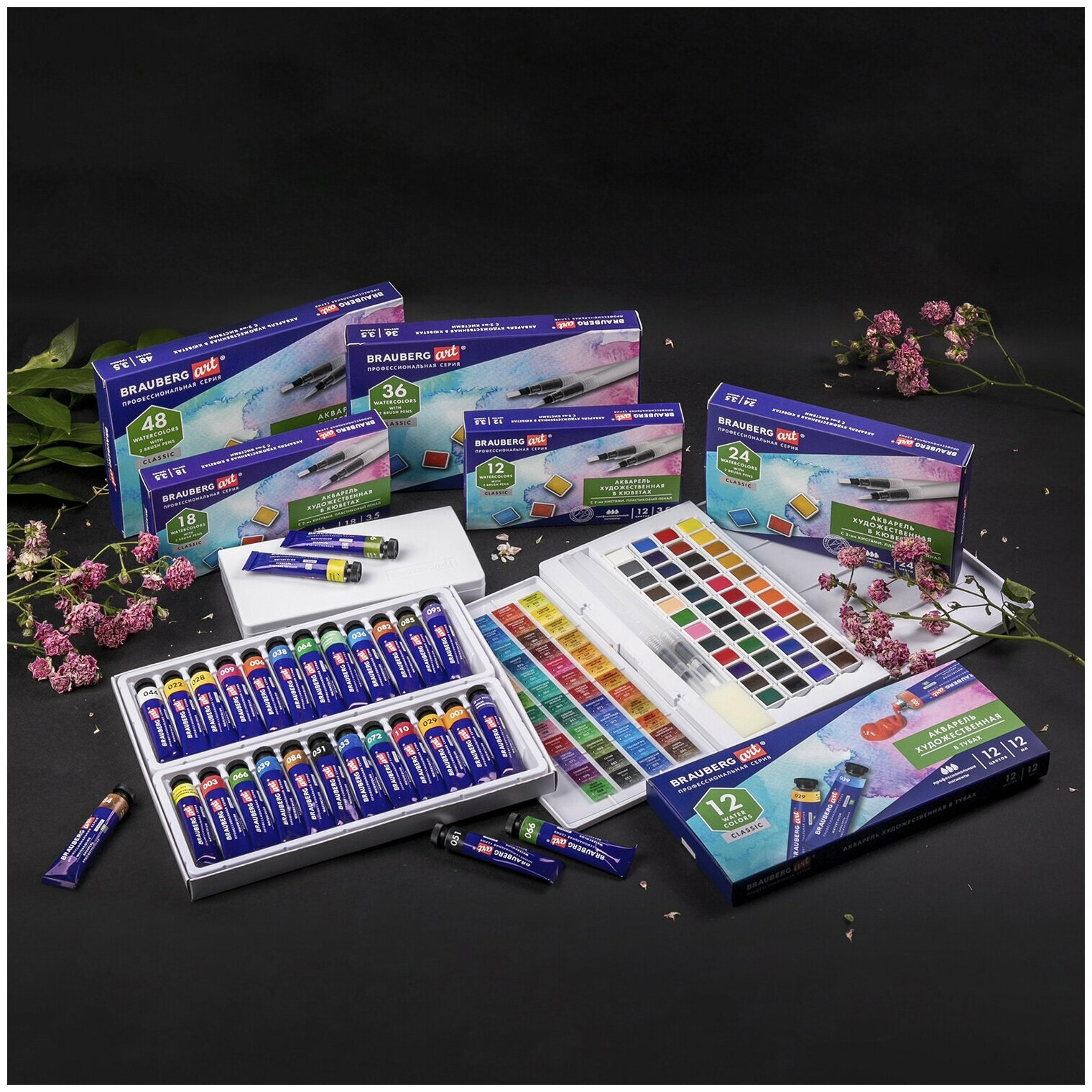 Акварель художественная в тубах набор 24 цвета по 12 мл, BRAUBERG ART CLASSIC, 191765