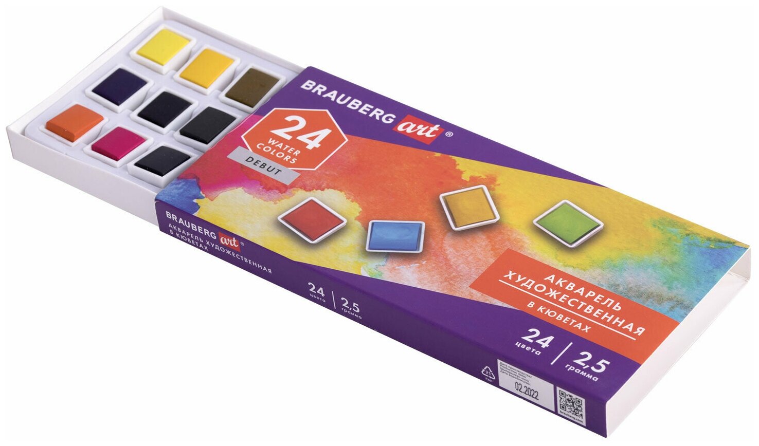 Акварель художественная / краски акварельные для рисования в кюветах Набор 24 цвета по 2,5 г, Brauberg Art Debut, 191778 информация: