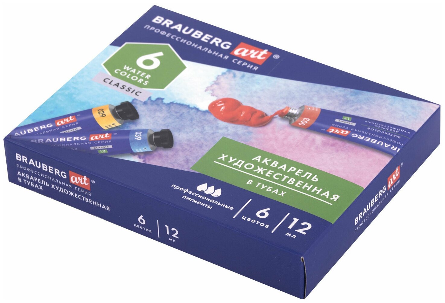 Акварель художественная в тубах набор 6 цветов по 12 мл, BRAUBERG ART CLASSIC, 191763