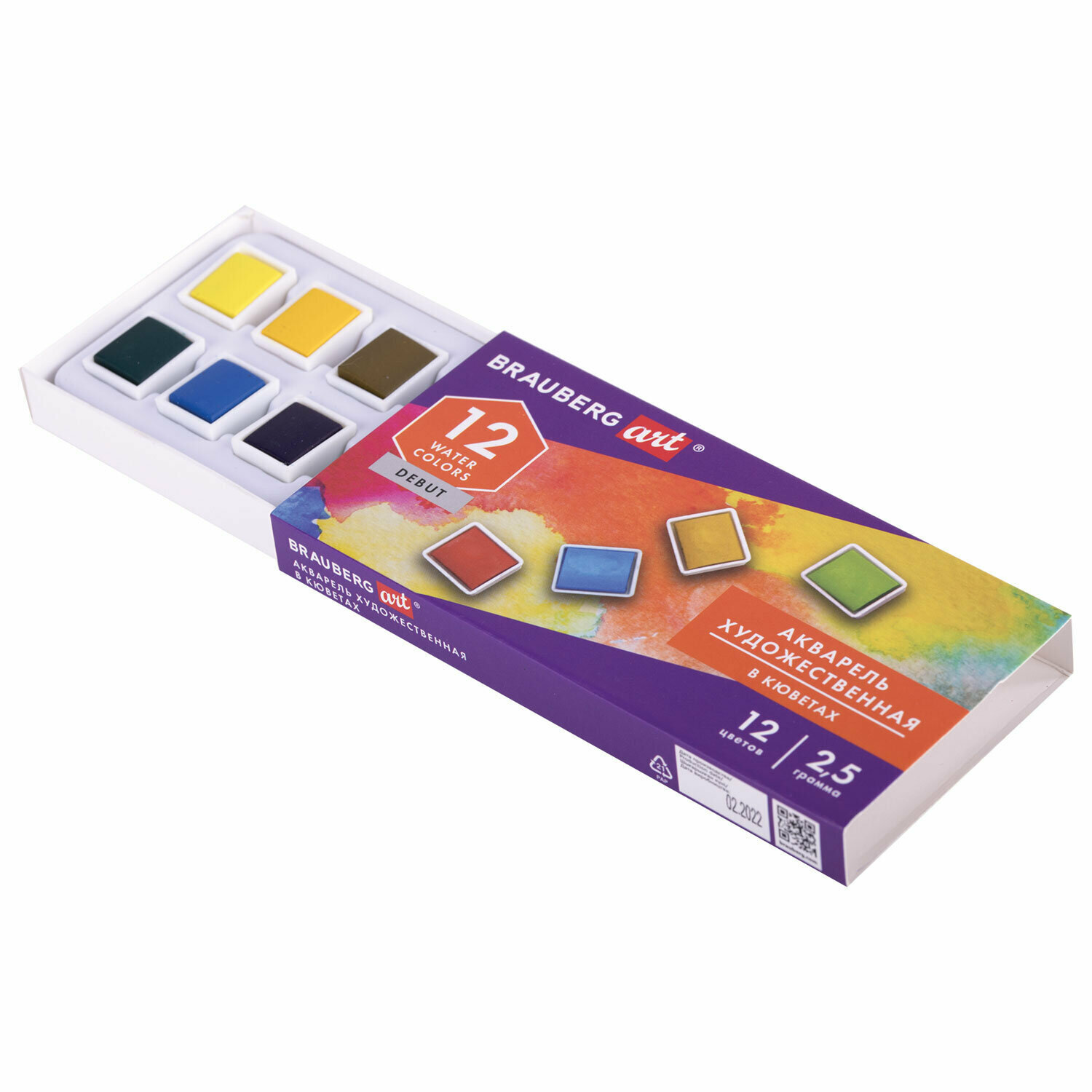Акварель художественная Brauberg в кюветах 12 цветов по 2,5 г, Art Debut (191776) информация: