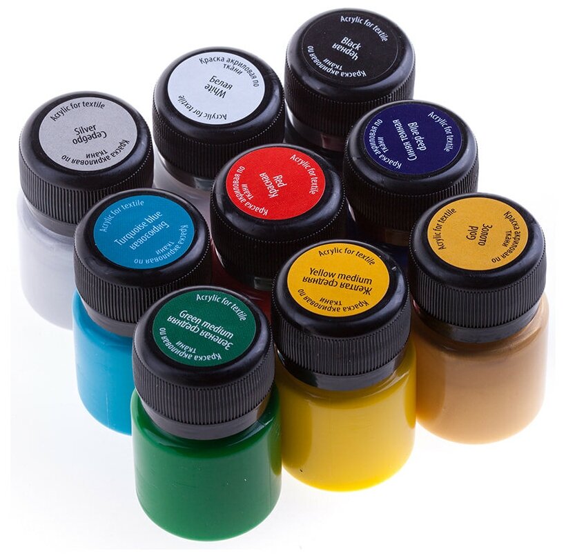 10 цен на DECOLA / Акриловые краски по ткани, 9 цветов по 20 мл, ЗХК Невская палитра